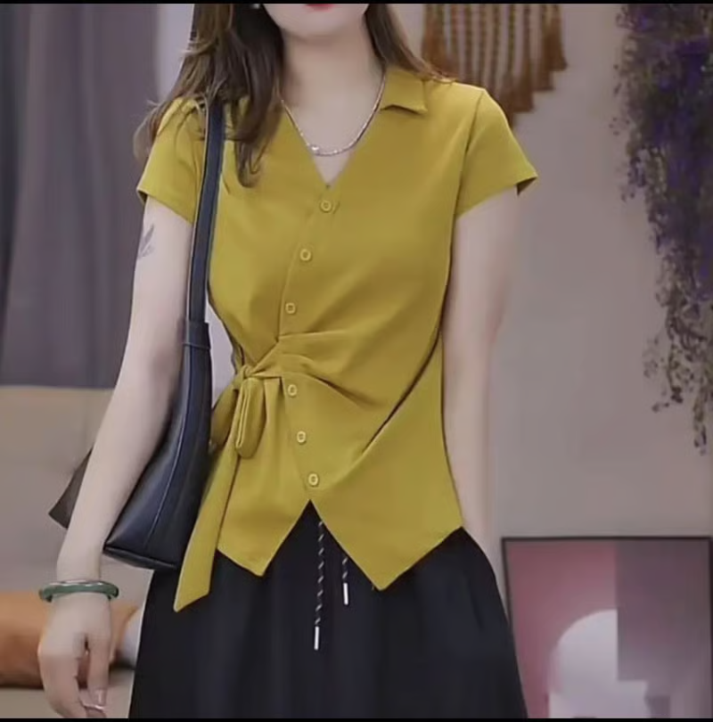 4分鐘前夏季新款重工不規則設計短袖時尚綁帶V領T恤女修身顯瘦上衣女 - 【均價699】到手2件-NT$1399